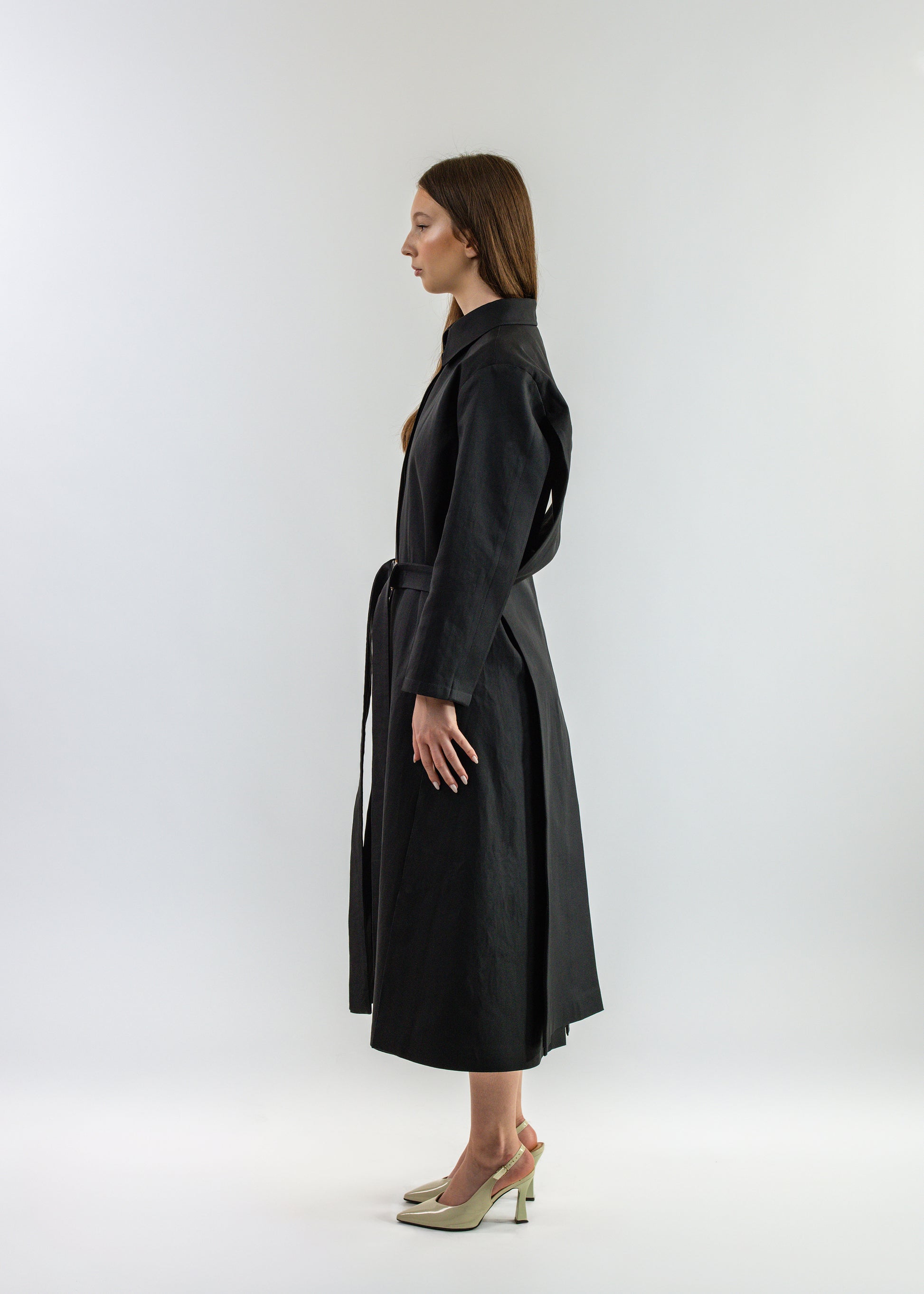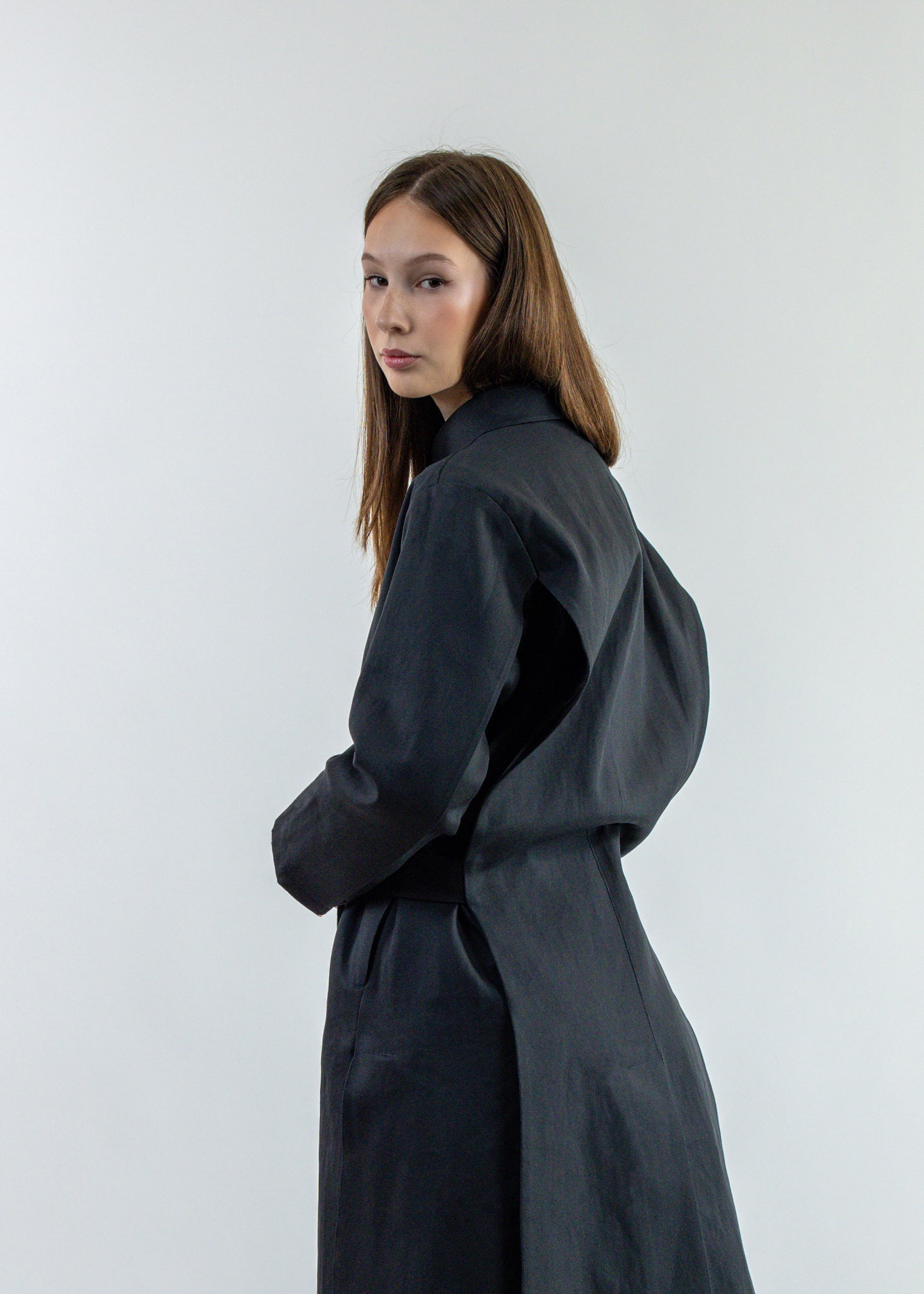 - An additional back layer adds a unique, flowing touch, distinguishing it from traditional trench designs.