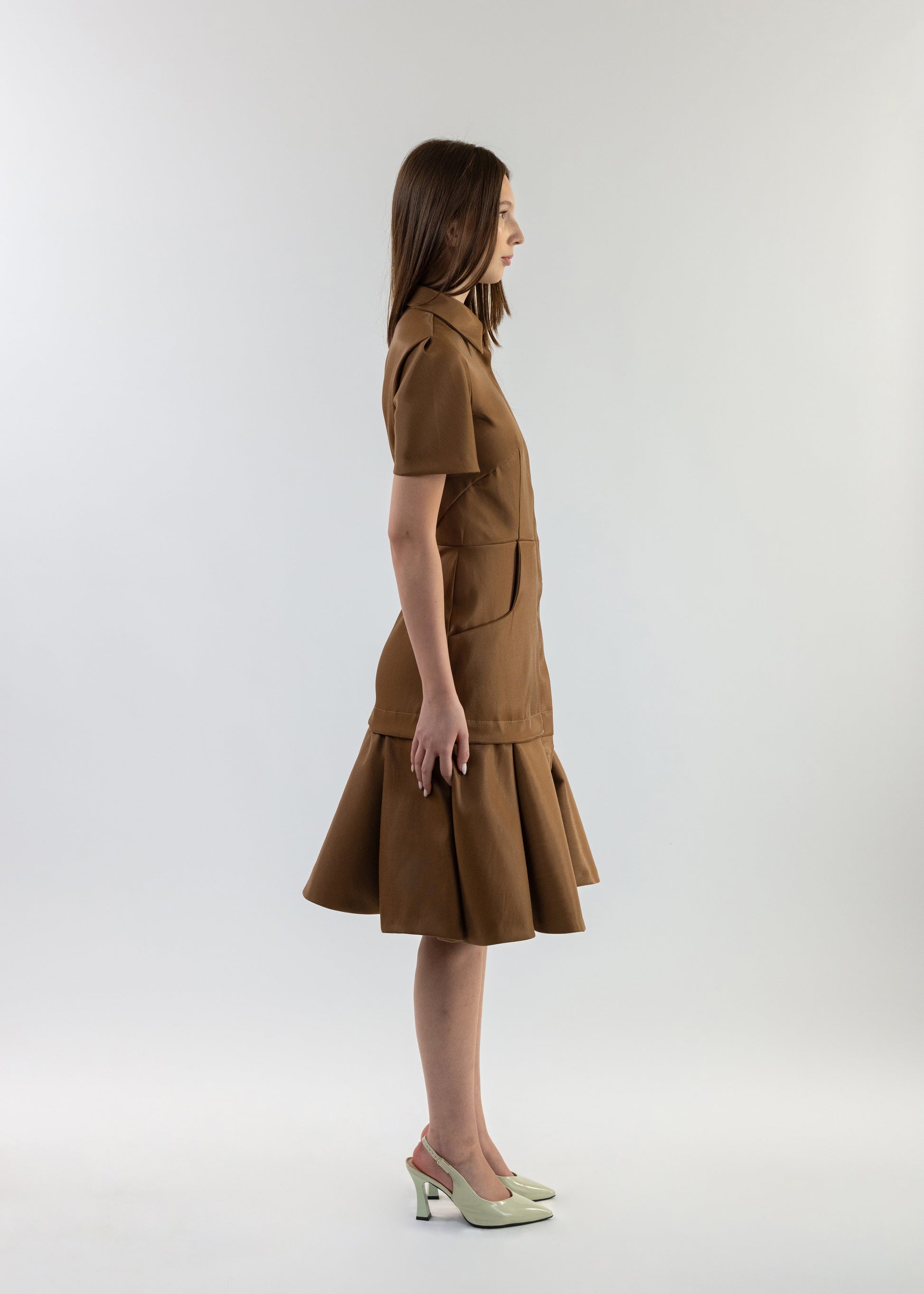 Brown Fitted Shirt Dress